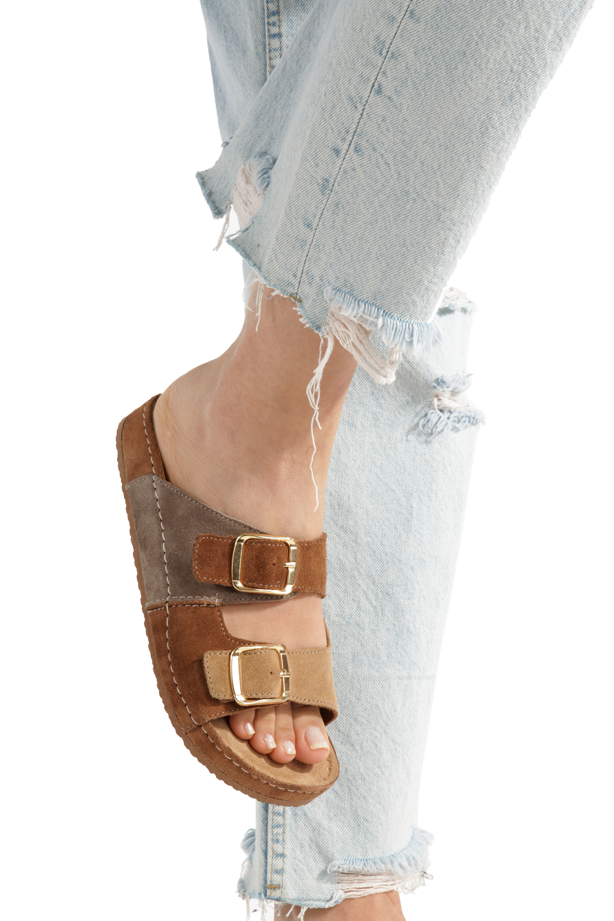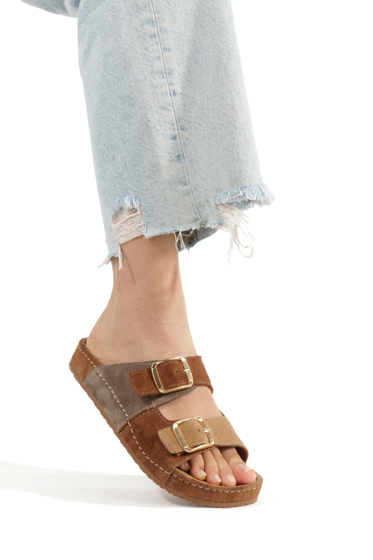 Çift Renk Süet Tokalı Kadın Terlik