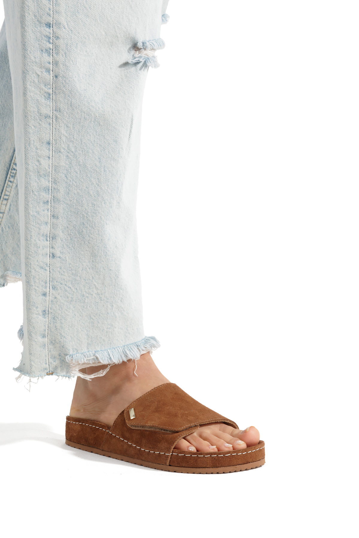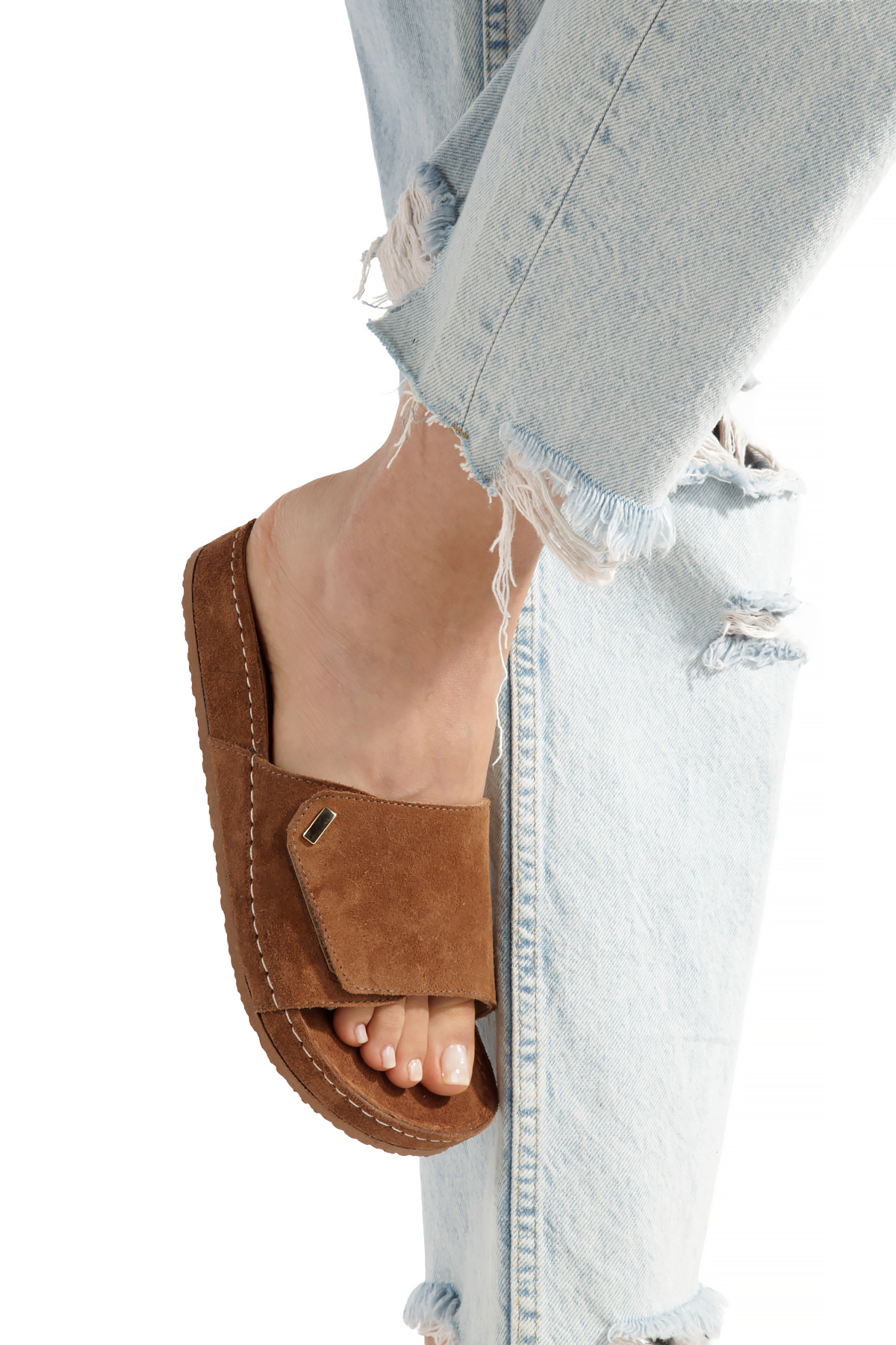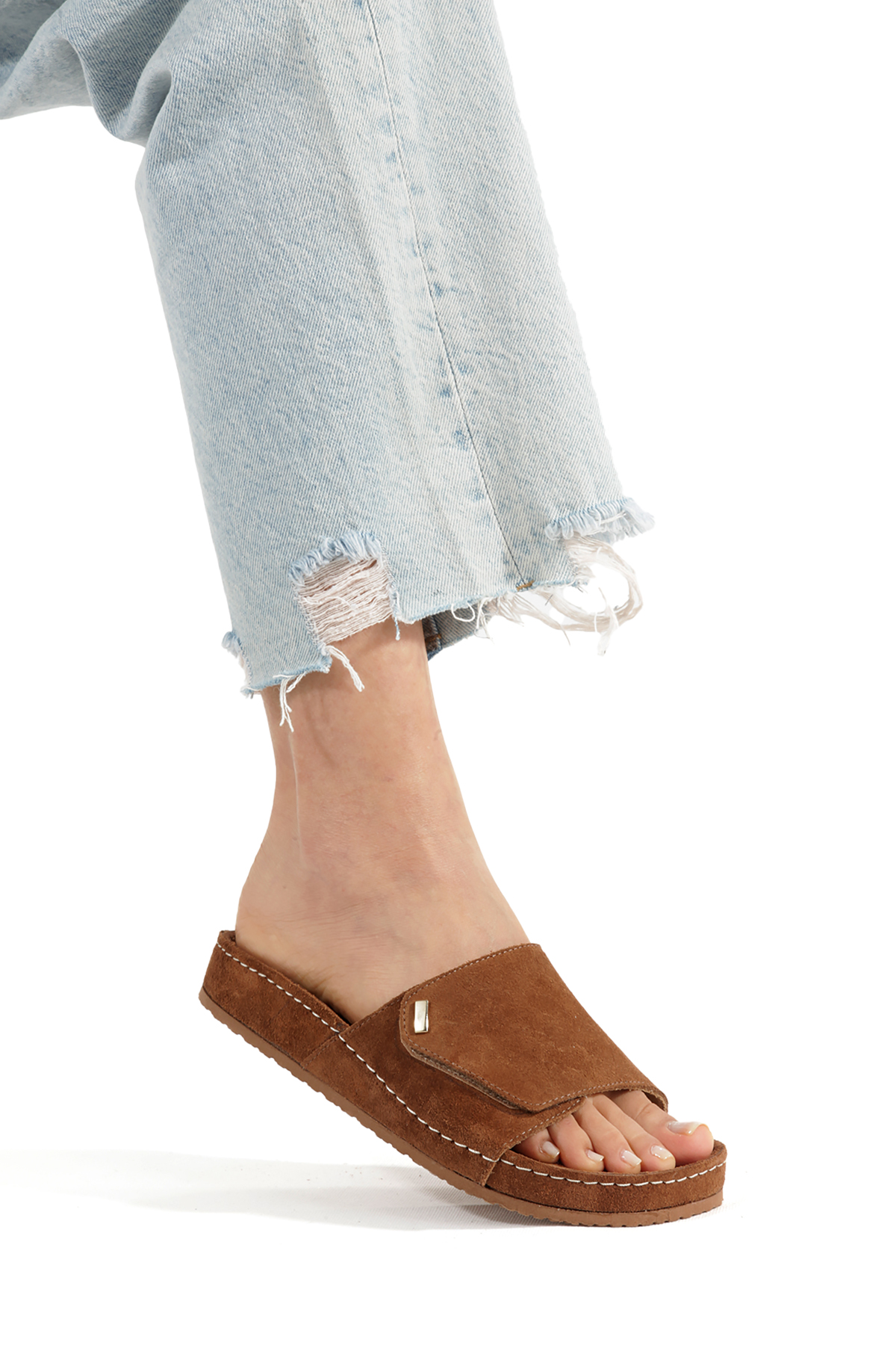 Minimal Metal Detaylı Süet Taba Kadın Terlik